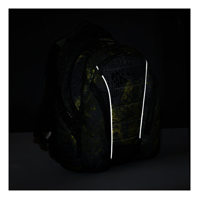 Detailný popis BAG: Hlavná komora je veľmi priestorná, pohodlne sa do nej vojdu napr. školské dosky aj učebnice formátu A4. Vo vnútri komory je veľké vrecko na gumu a vystužené vrecko na MP3 prehrávač alebo power banku (rozmery vrecka: 8,5 x 10 x 2cm), z hlavnej komory je vývod na kábel alebo sluchátka. Vo vnútri druhej (prostrednej) komory je vystužené vrecko na notebook, v hornej časti fixované popruhom na suchý zips, k zaistenie a upevnenie notebooku (rozmery vrecka: 28 x 27 x 6 cm). V prednej komore je prehľadný organizér, zo sieťovaným vreckom na zips a vreckom na mobil, mince alebo iné drobnosti. V hornej časti tejto komory je odnímateľný klip na kľúče s karabínou. V prednej časti batohu sú tri menšie vrecká na zips. Malé, mäkké vrecko ochráni vaše okuliare pred poškriabaním. Predné vertikálne vrecká sú vhodné na fľašu o objeme cca 0,5l alebo iné drobnosti. Dve bočné vrecká zo sieťkou a na zips sú konštruované na klasickú fľašu na pitie. Vojde sa sem aj 1,5l PET fľaša, ktorú je potrebné zafixovať bočnými kompresnými popruhmi, ktoré slúžia k stiahnutiu hĺbky batohu. Ramenné popruhy sú anatomicky tvarované a mäkko vystužené. Batoh je možné fixovať na ramenách pomocou voliteľného príslušenstva flexibilnej hrudnej pásky. Materiály použité na výrobu tohoto študentského batohu splňujú, z hľadiska nezávadnosti, normy EU. Dno batohu je vystužené a prešité. Batoh je vhodný pre chlapcov aj dievčatá. Vzhľadom k tomu, že sa jednotlivé potlačené časti batohu strihajú z role látky, môže byť každý batoh originál, tzn. rozloženie farebných plôch sa môže líšiť od fotografie.