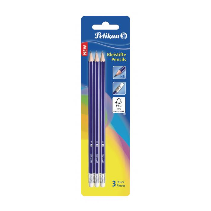 Ceruzka s gumou Pelikan HB 3ks v blistri