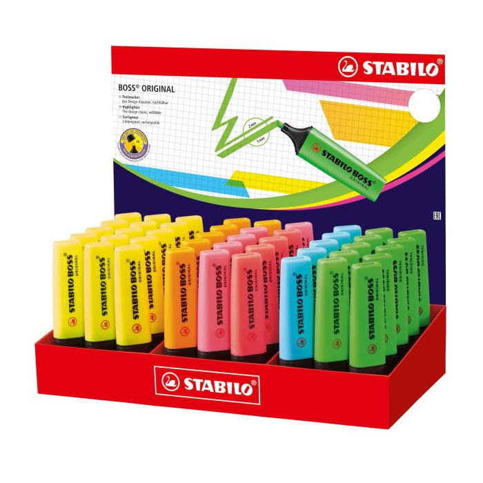 Jedinečné zvýrazňovače v klasickom prevedení. V 2 šírkach stopy. Vhodné pre prácu s papierom, kópiami a faxom. Vydržia až 4 hodiny bez vrchnáčika a nevyschnú. Balenie v displeji po 45.