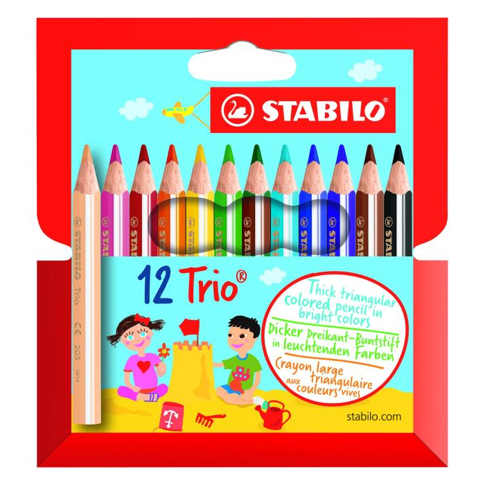 Farbičky STABILO Trio hrubé a krátke, v kartónovom obale, 12 ks