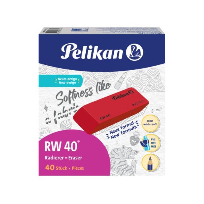 Guma bez PVC Pelikan RW 40 červená 40 ks
