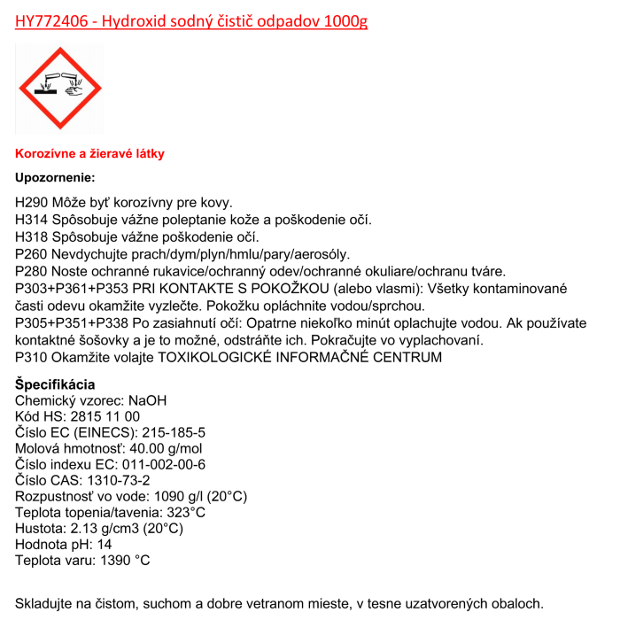 H314 Spôsobuje vážne poleptanie kože a poškodenie očí.