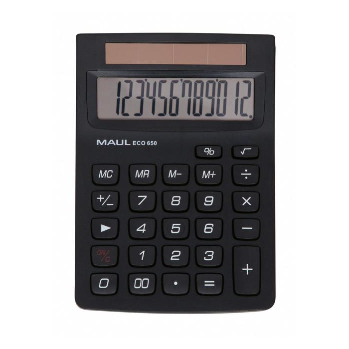 Vrecková kalkulačka s 12‑miestnym LCD displejom, plastovými tlačidlami a štandardnými funkciami. Dobré pre životné prostredie: Solárne napájanie - nie je potrebná žiadna batéria a žiadna výmena. Úspora zdrojov: Kryt vyrobený z 80 % recyklovaného plastu. Obal vyrobený z recyklovaného materiálu. Rozmer kalkulačky: