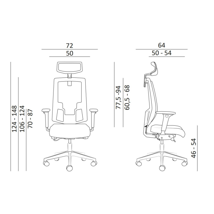 • synchrónny mechanizmus SYN-B s možnosťou plynulej premeny uhla sedadla a operadla, možnosť aretácie v 5 pozíciách, nastavenie tuhosti mechanizmu podľa telesnej hmotnosti užívateľa so 4 stupňami nastavenia intenzity