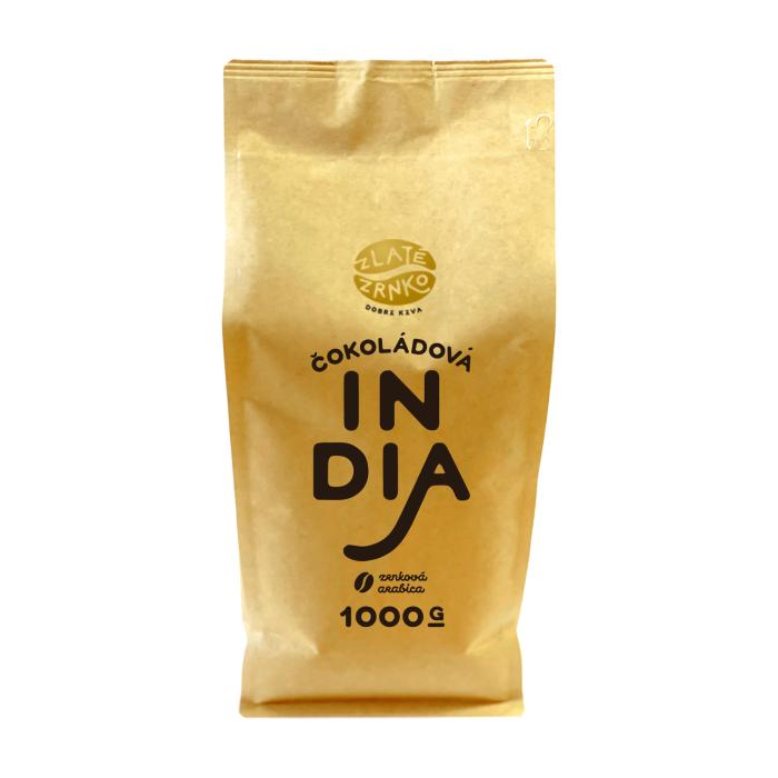 Káva Zlaté Zrnko - India sa vyznačuje kvalitným plným telom s intenzívnym pocitom v ústach. Náznaky horkej čokolády sa prelínajú s tónmi pražených lieskových orieškov. Predĺžená dochuť pripomína vlašské orechy.