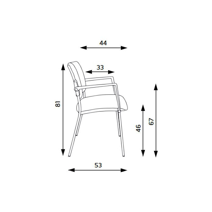 • Rozmery: šírka sedadla = 46,0 cm; hĺbka sedadla = 44,0 cm; výška sedu = 46,0 cm.