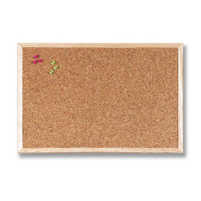 Nástenka v svetlom drevenom ráme v korkovej úprave. Súčasťou balenia je sada montážnych úchytov.