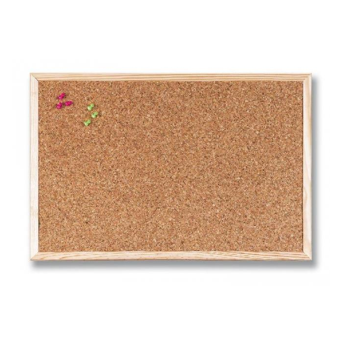 Nástenka v svetlom drevenom ráme v korkovej úprave. Dodávaná v štyroch rozmeroch. Montážne úchytky sú súčasťou balenia.