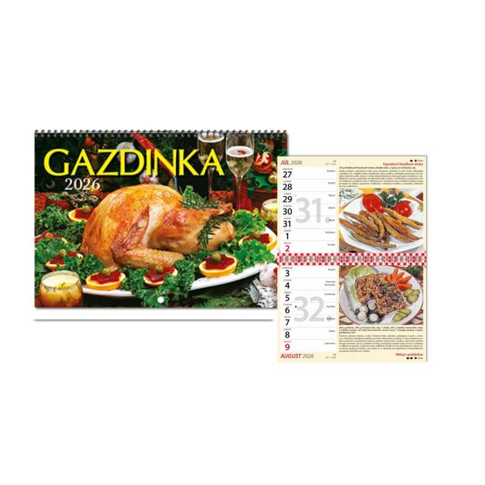 Tradičné chute, overené recepty a vôňa domova, to všetko prináša kalendár Gazdinka. Každý týždeň `v ňom nájdete poctivý domáci recept, inšpirovaný slovenskou kuchyňou, ako ju poznali naše staré mamy. Jedlá z bežných surovín, ktoré zahrejú pri srdci, od slaných klasík po sladké dobroty. Súčasťou kalendára sú aj praktické tipy do kuchyne, rady pre gazdinky.