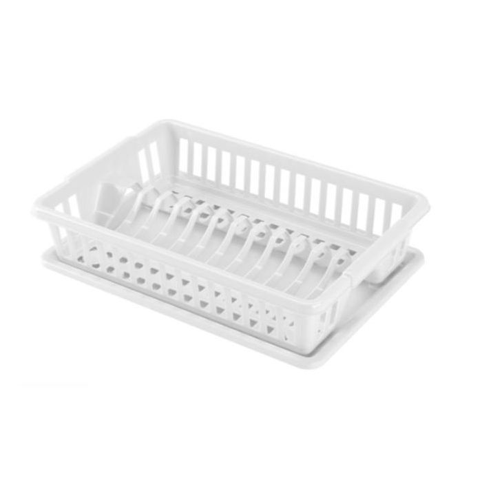 Plastový odkvapkávač na riad, ponúka priestor na odkvapkanie 10 tanierov. Kompaktný design, jednoduché skladovanie.