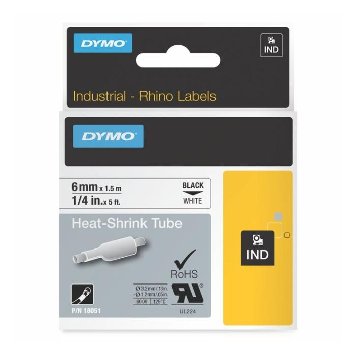Zmršťovacia bužírka Dymo 18051 do popisovačov štítkov Dymo. Kazeta obsahuje zmršťovaciu bužírku, ktorá je vhodná pre trvalé označenie a zároveň ochranu vodičov a káblov. Bužírky sú vyrobené z polyolefínu, sú ohňovzdorné a pomer zmrštenia je 3:1. Sú balené v štandardných kazetách a možno ich potlačiť v niektorom zo štítkovačov Dymo.