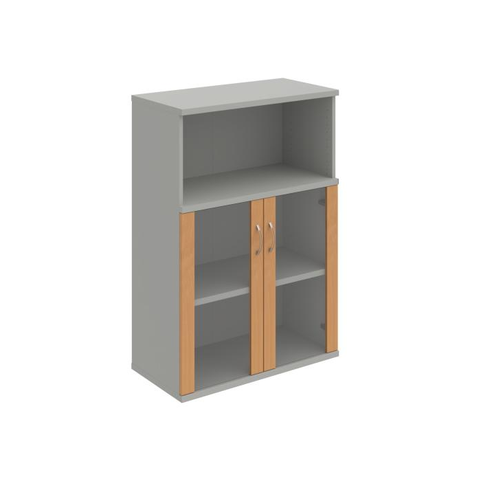 Kombinovaná skriňa - dvere/nika. Kancelárske skrine STRONG majú robustnú konštrukciu a vyššiu nosnosť políc ako bežné kancelárske skrine.V ponuke sú skriňové moduly s výškou 185 cm, 111 cm alebo 74 cm a šírky 80 cm alebo 40 cm. Hĺbka všetkých modelov skriňového radu STRONG je 40 cm.Chrbát, vyrobený z 8 mm hrubých dosák, je obojstranne pohľadový, takže skrine môžete použiť ako priestorový deliaci prvok. Hrúbka samotných políc je 25 mm, čo znamená nosnosť 80 kg na 1 policu.Korpusy, dvierka a police skríň sú olepené odolnou 2mm ABS hranou, ktorá garantuje dostatočnú ochranu proti poškodeniu.