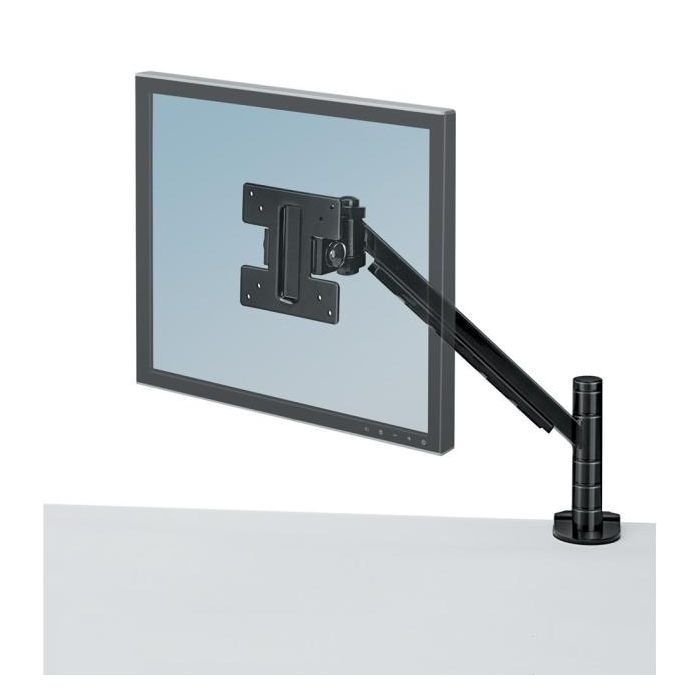 Rameno s možnosťou otáčania do 360 ° a vertikálnym nastavením sklonu v rozpätí +45 až -45 °. Optimálne nastavenie výšky v 4 fixačných výškových polohách (0-483 mm). Vhodné pre monitory do 21` s hmotnosťou do 6,5 kg. Úchyt na hranu stola. Ľahká montáž pomocou 2 svoriek.