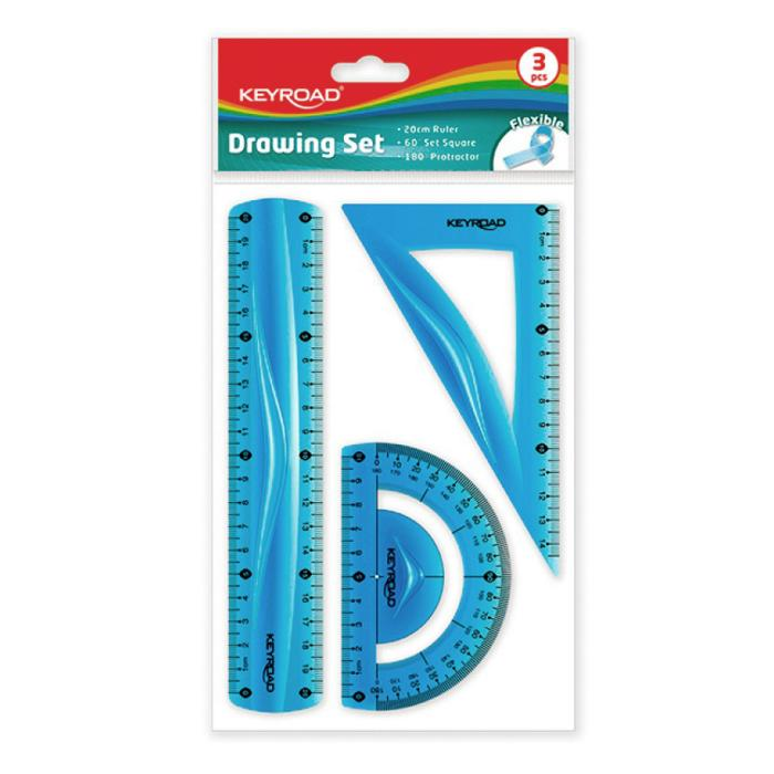 Rysovacia súprava pravítiek KEYROAD ohybná, mix farieb, sada 3