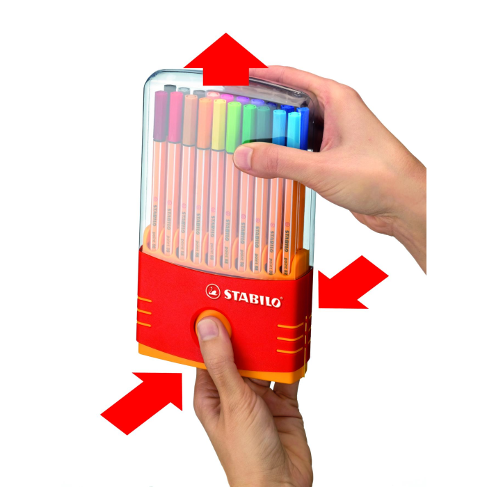Veľmi obľúbený jednorazový liner na atramentovej báze. Vhodný na písanie a rysovanie podľa šablóny alebo pravítka. Kovové puzdro hrotu zaisťuje dlhú životnosť. Šírka stopy 0,4 mm. Dodávaný v sade 20 farieb.
