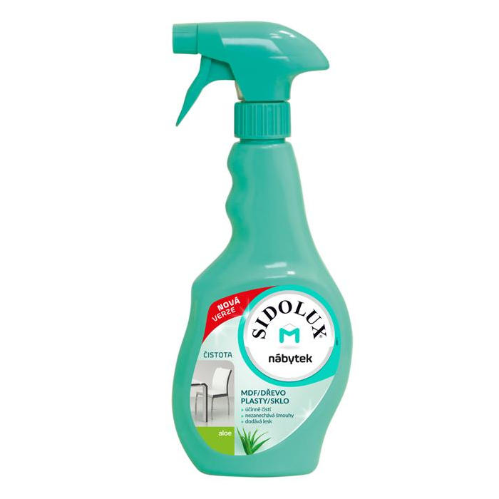 Dokonale čistí sklenené povrchy, plasty, nábytok z MDF, drevený nábytok. Antistatické zložky tvoria na povrchu ochrannú vrstvu. Nesteká z povrchov. Nezanecháva šmuhy.
