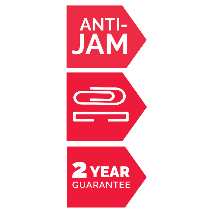 Technológia Anti-jam automaticky zastaví a spustí spätný chod pri vložení príliš veľkého množstva papiera