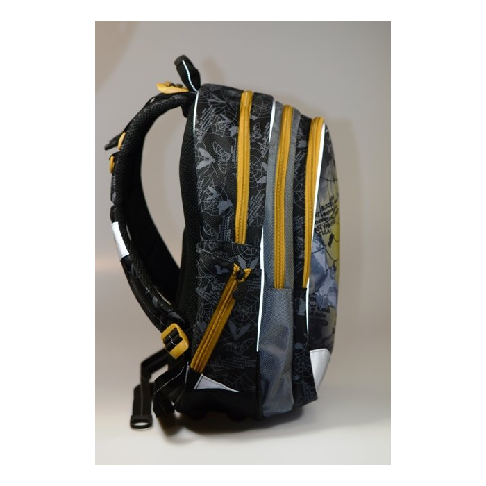 Bagmaster školský batoh EV 07 0115 B je troj-komorový školský batoh pre chlapcov s motívom netopierov a pavúčich sietí. Ideálny pre chlapcov, ktorí milujú strašidelné príbehy a tajomno. Tento školský batoh je určený svojimi rozmermi pre 1. stupeň ZŠ, hlavne pre 3. – 5. triedu. Predné vrecko je potlačené motívom netopierov a pavúčich sietí. Špecifikácia školského batohu EV 07 0115 B: Troj-komorový školský batoh 2 postranné sieťované vrecká na gumu, vhodné na fľašu, jedno vrecko je kryté vonkajším látkovým vreckom so zipsom Ergonomicky tvarovaný chrbát, vrátane ľahkého hliníkového rámu na podporu správneho držania tela školáka Nastaviteľné ramenné popruhy, mäkko vystužené Vrecko na krabičku na desiatu alebo peračník v prednej komore Organizér Spevnené dno s plastovými nožičkami proti oderu dna Parametre školského batohu EV 07 0115 B: Materiál: 100% polyester - vonkajšia látka aj podšívka Farba: čierna/hnedá/šedá Rozmery: 42,5 x 31 x 18 cm Hmotnosť: 1 kg Nosnosť: 7 kg Objem: 18 l Detailný popis EV 07 0115 B: Chlapčenský školský batoh EV 07 0115 B, má tri komory. Hlavná komora je spracovaná tak, aby sa do nej pohodlne vošli školské dosky, zošity veľkosti A4 alebo ťažšie učebnice. Vo vnútornej časti tejto hlavnej komory je v prešitom látkovom vrecku fixovaný k chrbtu batohu ľahký, ale vysoko účinný hliníkový rám, ktorý je ergonomicky tvarovaný. Vnútorný hliníkový rám fyziologicky tvaruje chrbtový systém batohu, tak aby podporoval chrbticu a správny vývoj chrbtu vašeho dieťaťa. Naplnený školský batoh vďaka tomu dobre prilieha k chrbátu školáka a je mäkko vystužený, hlavne okolo chrbtice a pod bedrovou časťou chrbtice. Anatomické tvarované, vystuženie, vrátane efektívnych priehlbín, umožňuje dostatočnú cirkuláciu vzduchu a tak minimalizuje potenie chrbátu dieťaťa. Prostredná (druhá) komora je dostatočne priestorná a dostatočne hlboká. Dá sa tak isto použiť na školské dosky alebo zošity o veľkosti A4. Vo vnútri tretej komory (predná komora) je prehľadný organizér s veľkým množstvom vreciek a jedným sieťovaným čiernym vreckom na zips. Súčasťou organizéru je plastový klip na kľúče, zakladač na 2 ceruzky a vrecko na mobil (rozmery vrecka: 11 x 6 cm). Vo vnútri tejto komory je vrecko na krabičku na desiatu alebo peračník. Dve čierne sieťované vrecká na gumu, na stranách batohu – vhodné na fľaše. Jedno bočné sieťované vrecko je kryté vonkajším látkovým vreckom na zips a v prípade použitia sieťovaného vrecka na drobnosti ho môžete bezpečne zavrieť. Ramenné popruhy sú anatomicky tvarované a mäkko vystužené. Popruhy je možné individuálne nastaviť podľa veľkosti vášho školáka a to pomocou horných a dolných hnedých plastových spôn umiestnených na ramenných popruhoch. Na našom e-shope si môžete k tomuto batohu doobjednať hrudnú pásku. Túto hrudnú pásku môžete kedykoľvek dať dolu a použiť napr. na iný batoh ktorý splňuje podmienky k pripevneniu. Na školskom batohu EV 07 0115 B je veľké množstvo reflexného materiálu pre maximálne zvýšenie viditeľnosti dieťaťa v doprave. Hlavne v prednej časti školského batohu, po stranách (reflexný prámik krytý transparentným plastom), ale aj na ramenných popruhoch. Zároveň čierny popruh na ramenných popruhoch je pretkaný reflexnou linkou. Materiály použité na výrobu tohto školského batohu splňujú normy EU z hľadiska nezávadnosti. Reflexné materiály tak isto splňujú normy EU. Dno batohu je spevnené (z vonkajšej strany) použitý pevný luxusný materiál 1680 D (vysoko odolný materiál používajúci sa na cestovné kufre). Dno je vybavené plastovými nožičkami - chrániace batoh proti zašpineniu a zároveň poskytujú dostatočnú stabilitu, takže batoh sám stojí, či už je alebo nie je naplnený. Školský batoh je možné pripevniť na háčik k lavici pomocou látkového pútka. Čierne držadlo dobre padne dieťaťu do ruky a je z príjemného mäkkého plastu. Vnútorná podšívka je svetlo šedá s potlačou loga BAGMASTER. Vonkajšie zipsy sú hnedé, zipsová tiahla sú čierne. Celkový vzhľad školského batohu je prepracovaný a zladený, či už sa jedná o hnedé vyšité logo na ramennom popruhu, plastové spony alebo ústrednú tlač. Zipsové ťaháčiky sú ergonomicky tvarované, dobre padnú dieťaťu do ruky, sú mäkko pogumované a príjemné na dotyk. Svetlo šedá a čierna látka - na hlavnej a prostrednej komore luxusný, odolný 1680 D polyester materiál.