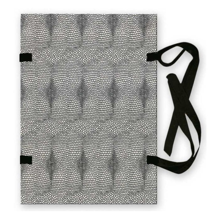 Jednostranne poťahované kartónové dosky bez chrbta, spojené šnúrkami. Vyrobené zo strojnej lepenky s gramážou 1 050 g. Prevedenie hadia koža. Formát A3. Väčšie balenie 25 ks.