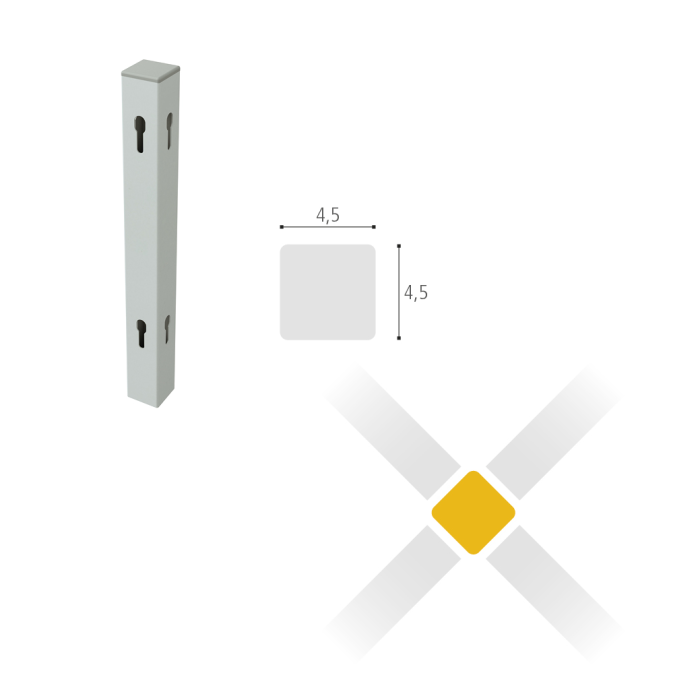 Profilový stĺpik „X“ na napojenie 4 kusov paravánov. Profil 4,5 x 4,5 cm. Cena montáže je 15% z cenníkovej ceny výrobku. Požiadavku na montáž uveďte prosím do poznámky k objednávke. Objednávka tohto produktu je záväzná a produkt nie je možné vrátiť.