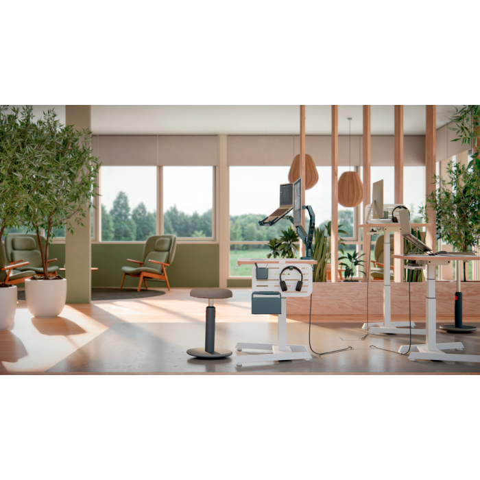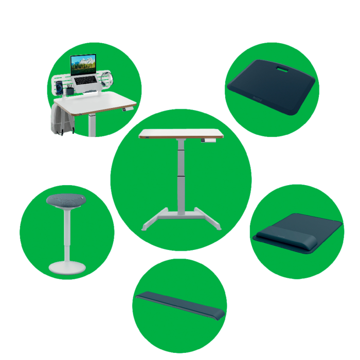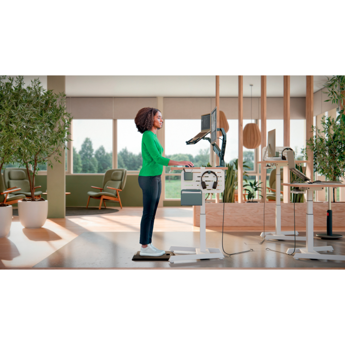 SEDIEŤ - ŠTÁT - HÝBAŤ SA. Či už sa usilujete o zdravší pracovný režim alebo hľadáte ergonomické riešenie, ako sa vyhnúť bolestiam, naše priestorovo úsporné stoly sú navrhnuté tak, aby pozdvihli váš pracovný priestor do nových výšin.