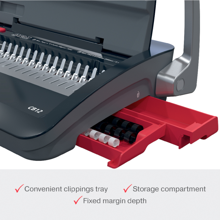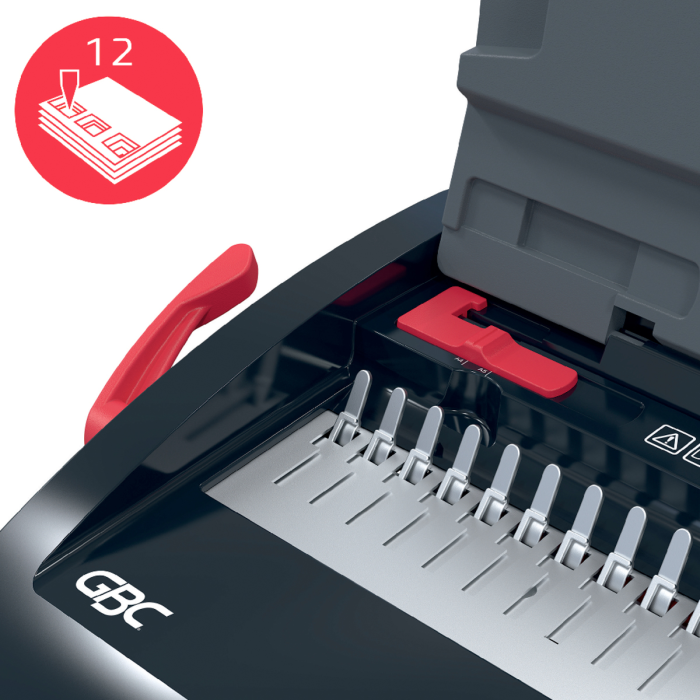 CombBind® CB12 je spoľahlivý a kompaktný ručný viazač vhodný na domáce použitie alebo do malých kancelárií s nízkym objemom väzby. Ľahko prederaví až 12 listov papiera A5/A4 s gramážou 80 g/m² a zviaže až 165 listov naraz pomocou chrbtov s priemerom 19 mm. Vďaka ľahkej a priestorovo úspornej konštrukcii ho možno používať kdekoľvek a kedykoľvek a jednoducho uložiť, keď sa nepoužíva. Pre väčšie pohodlie je vybavený zásobníkom na odrezky pre jednoduché vysypanie a praktickým úložným priestorom. Univerzálna väzba: jednoducho zviažete dokumenty formátu A5 pomocou chrbátov A5 a strany formátu A4 na výšku pomocou chrbátov A4. Ručné dierovanie s jednou pákou pre jednoduché a plynulé viazanie. Ľahká a kompaktná konštrukcia pre jednoduché prenášanie a pohodlné uloženie. Čierna a strieborná farba.