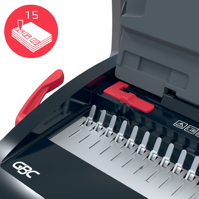 • spoľahlivý a kompaktný ručný viazač s plastovými chrbtami • ideálny na osobné použitie alebo do malých kancelárií s nízkym objemom väzby • predieruje až 15 listov papiera s gramážou 80 g/m² formátu A5/A4 naraz pomocou hrebeňa • zviaže až 165 listov naraz pomocou 19 mm chrbtov • možno používať kdekoľvek a kedykoľvek a jednoducho uložiť, keď sa nepoužíva • pre väčšie pohodlie obsahuje zásobník na odrezky pre jednoduchú likvidáciu a praktický úložný priestor • ručný dierovač s dvoma pákami pre hladký zážitok z viazania s minimálnou námahou • nastavenie bočného okraja pre presné zarovnanie a konzistentné výsledky väzby • pevná hĺbka okraja pre konzistentnú a vysokokvalitnú väzbu • protišmykové gumové nožičky pre stabilné a bezpečné umiestnenie • praktická priehradka na odrezky a vstavaný úložný priestor pre lepšiu organizáciu • rozmery 458 x 395 x 264 mm • farba čierna alebo strieborná