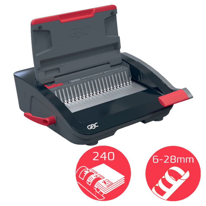 • spoľahlivý a kompaktný ručný viazač s plastovými chrbtami, navrhnutý na zdieľané použitie v kancelárskom a školskom prostredí s bežnými nárokmi na objem väzby