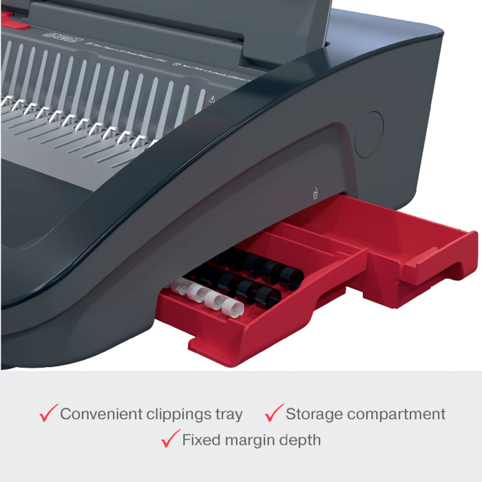 • zjednodušuje proces väzby - bez námahy prederaví až 25 listov papiera s gramážou 80 g/m² formátu A5/A4 naraz