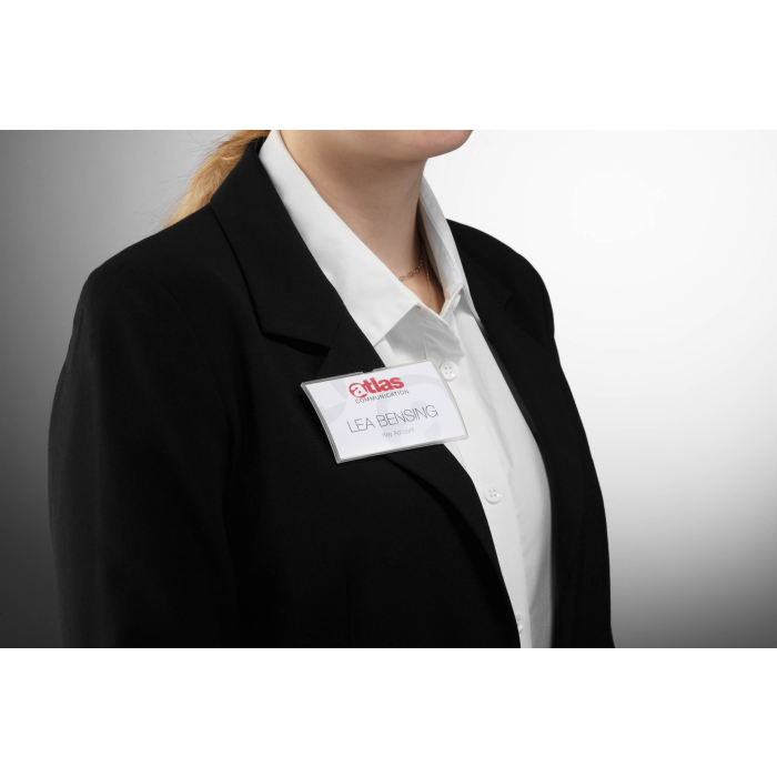 • Konvexná jednodielna menovka vyrobená z PP so špeciálnym magnetickým zapínaním, ktoré zabraňuje skrúteniu, skĺznutiu alebo uvoľneniu menovky pri nosení