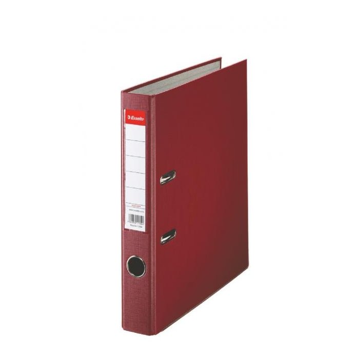 Pákový zakladač formátu A4, potiahnutý z vonkajšej strany plastom a z vnútornej hladkým papierom. Vybavený chrbtovým krúžkom, vreckom s vymeniteľným chrbtovým štítkom, ochranným spodným kovaním a uzatváracím mechanizmom. Šírka chrbta 5 cm. Väčšie balenie 25 ks. Chrbát: 5 cm Farba: bordová