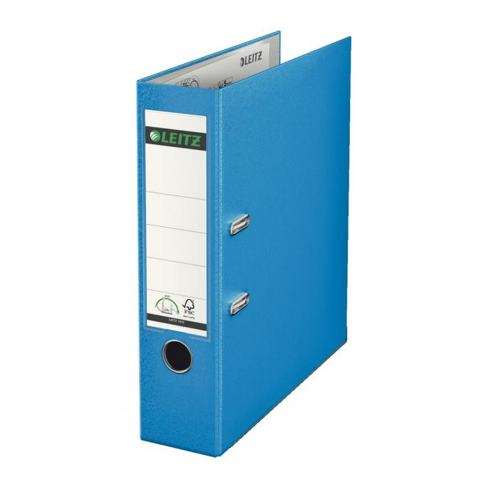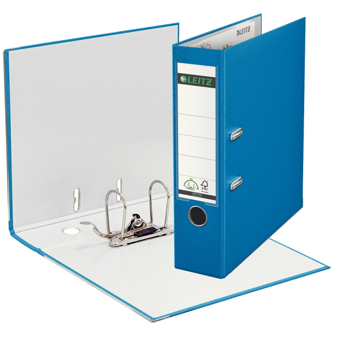Pákový celoplastový zakladač formátu A4 vyrobený z kvalitného kartónu. Vonkajšia strana potiahnutá farebnou, vnútorná sivou PP fóliou. Mechanika umožňuje o 50 % širšie otvorenie. S chrbtovým krúžkom, kovovou lištou a vymeniteľným papierovým štítkom na popis.