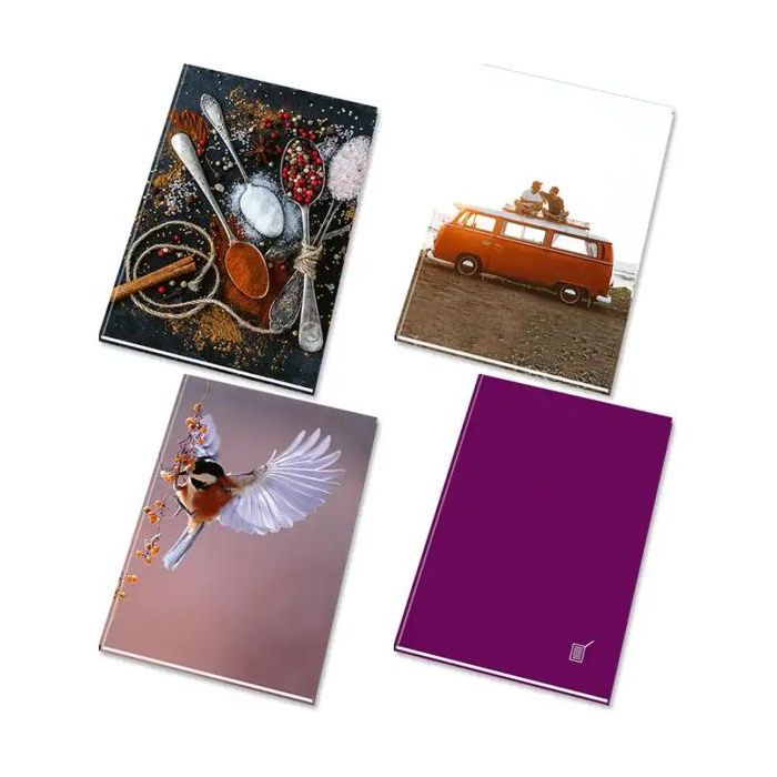 Záznamová kniha s bezdrevným papierom v pevnej väzbe s lesklou lamináciou.