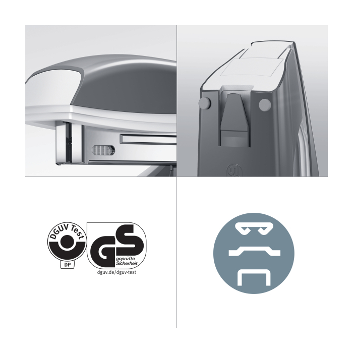 Otvorené a uzatvorené zošívanie - prestavenie pomocou ľahkého otočenia nákovky, možné aj zošívanie nástenkové.