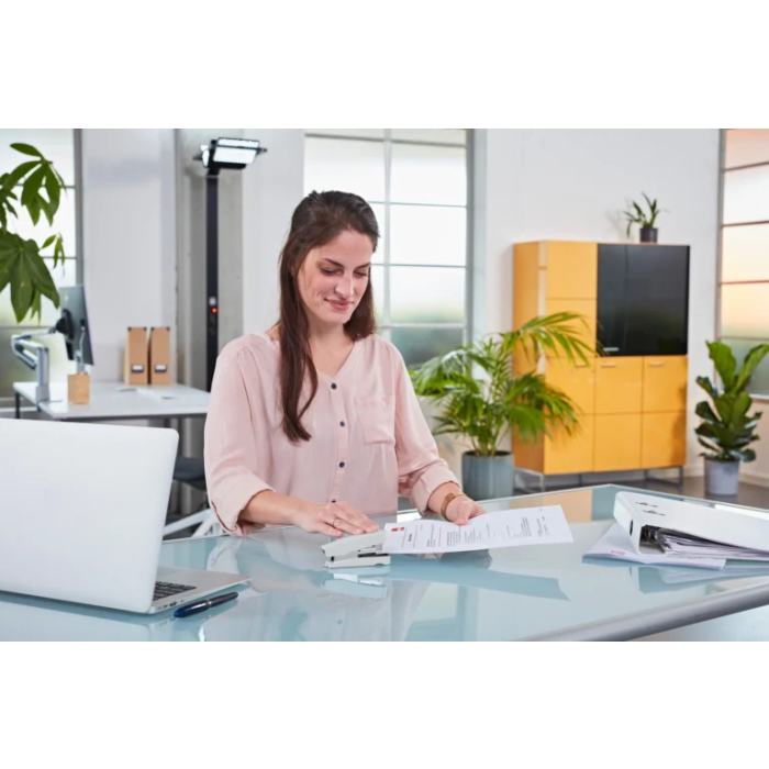 Malá ľahká zošívačka so systémom plochého zošívania (Flat-Clinch), umožňujúca superľahké zošívanie. Plastový zásobník, jednoduché vedenie spiniek. Kapacita náplne 100 spiniek veľkosti  10. Hĺbka zošívania 3,8 cm. Hmotnosť 115 g. Záruka 10 rokov.