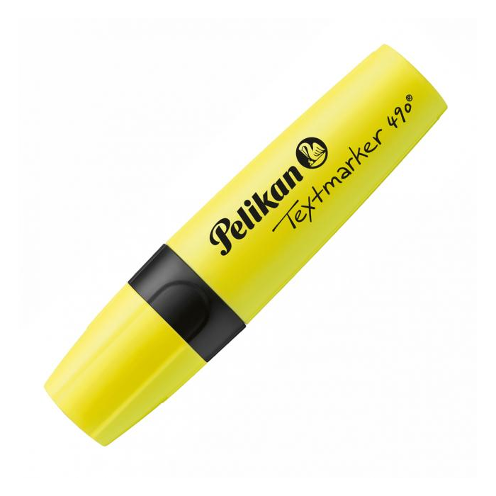 Zvýrazňovač Pelikan 490 osadený klinovým hrotom so šírkou stopy 1 - 5 mm. Plnený atramentom na vodnej báze, vhodným na všetky druhy papierov, odolný voči vysychaniu. Balenie v krabičke. Farba žltá.